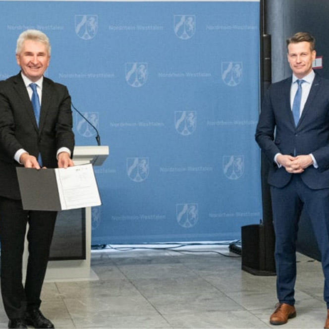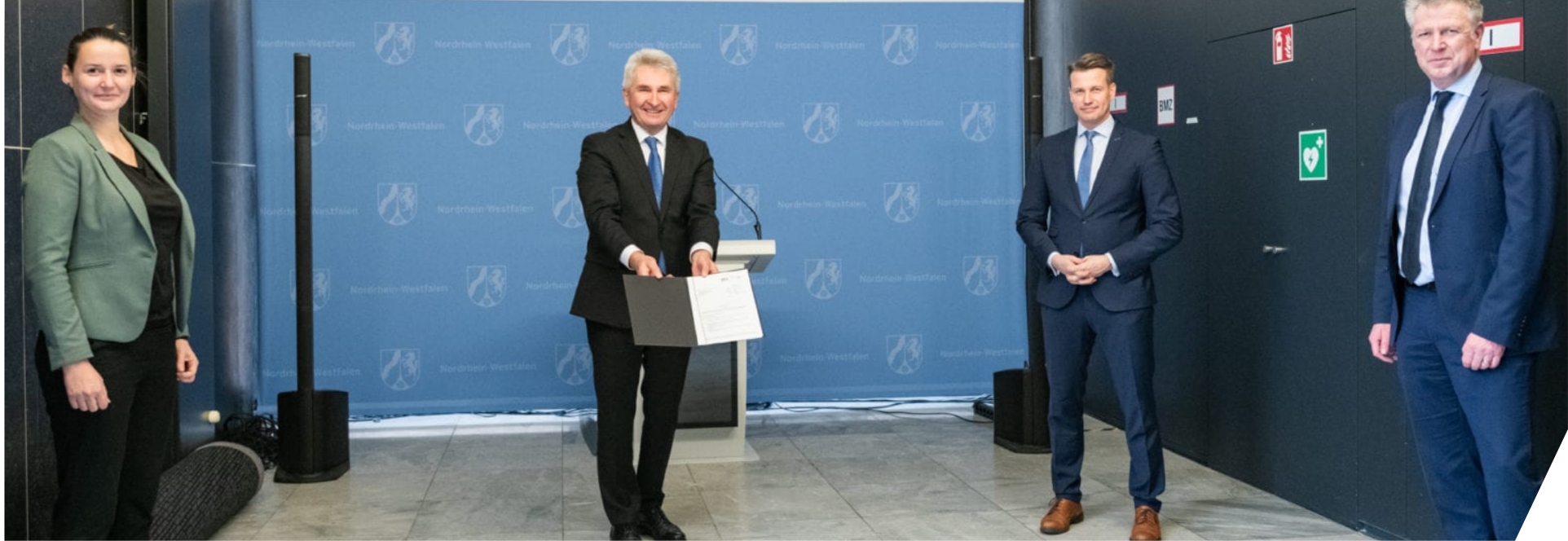 Der KI.NRW-Demonstrator „recognAIze“ macht eine KI-gestützte Dokumentenanalyse erlebbar. Über die Anwendung können Ihre eigenen abfotografierten oder eingescannten Dokumente in das System hochgeladen werden. In nur wenigen Schritten ist das digitalisierte Dokument als PDF oder XML zum Herunterladen bereit. Der KI.NRW Demonstrator zeigt Ihnen: